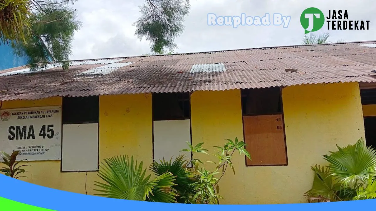 SMA YAPEND 45 Jayapura merupakan sebuah lembaga pendidikan tingkat menengah atas yang berlokasi di Kota Jayapura, Provinsi Papua. Beralamat di Ardipura, Distrik Jayapura Selatan, Kota Jayapura, Papua 99221, SMA YAPEND 45 Jayapura berkomitmen untuk memberikan pendidikan berkualitas bagi generasi muda Papua. Sekolah ini menyediakan lingkungan belajar yang kondusif dan mendukung perkembangan akademis, sosial, dan emosional siswa. Kurikulum yang diterapkan dirancang untuk mempersiapkan siswa menghadapi tantangan masa depan dan mengembangkan potensi terbaik mereka.